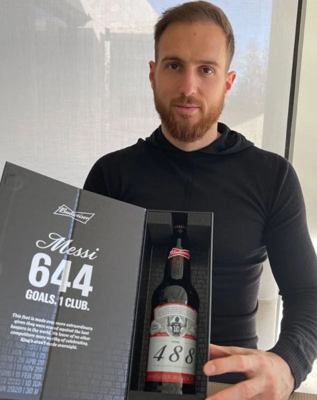 Cứ mỗi một bàn bị thủng lưới từ pha dứt điểm của Messi, các thủ môn sẽ nhận 1 chai bia. Hãng Budweiser tuyên bố, “644 bàn thắng tượng trưng cho 644 loại bia dành cho 160 thủ môn”.