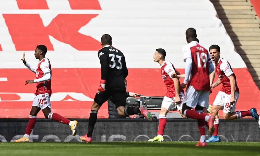 Gia tăng sức ép liên tục, Arsenal cũng có được bàn thắng gỡ hoà ở phút bù giờ cuối trận. Từ tình huống Arsenal được hưởng phạt góc, bóng tìm đến vị trí của Ceballos và tiền vệ của Arsenal nhanh chân tung cú dứt điểm chéo góc. Mặc dù thủ môn Areola đã chạm tay vào bóng sau cú sút của Ceballos, tuy nhiên người gác đền của Fulham không thể ôm trọn được bóng. Ngay lập tức, Nketiah có mặt kịp thời để đệm bóng cận thành giúp Arsenal gỡ hoà 1-1.