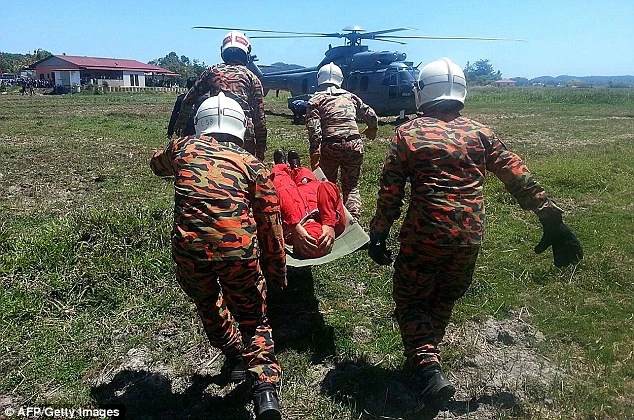Đội cứu hộ đã tìm thấy được các phi công và chuyển đi cấp cứu (Ảnh: AFP)