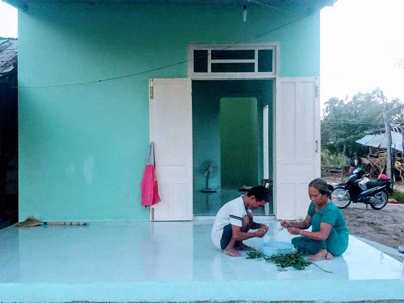 Mặc dù nhà ở giữa cánh đồng xa, việc vận chuyển vật liệu khó khăn, chủ yếu bằng sức người nhưng sau một thời gian căn nhà mới cho hai mẹ con cũng hoàn thành. Căn nhà 30 m2 có hai phòng, mái hiên rộng rãi, mát mẻ.