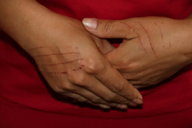 Những vết rạch chị Vân bị bà Nhuần rạch.