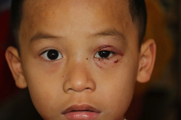 Cháu bé con anh Võ cũng bị đánh bầm mắt.