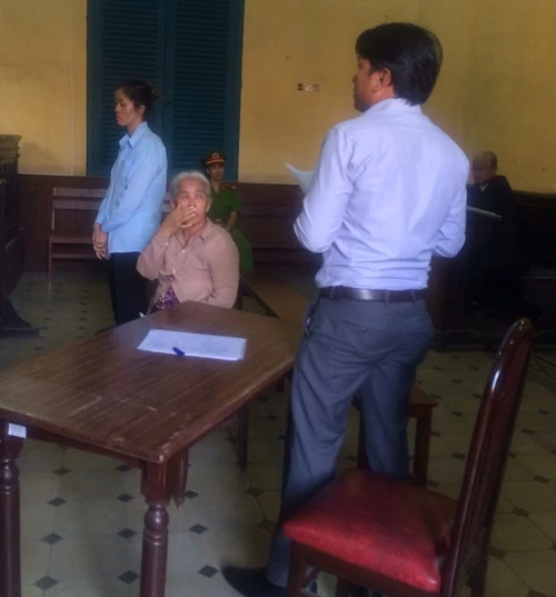 Hai mẹ con bị cáo đang nghe phiên dịch dịch lại án toà tuyên