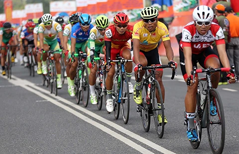 Huỳnh Thanh Tùng (92) chỉ thua 0,62 giây và đang đeo bám áo vàng Trường Tài cùng âm mưu soán ngôi tại chặng cuối Bảo Lộc - TP.HCM. Ảnh: MQ
