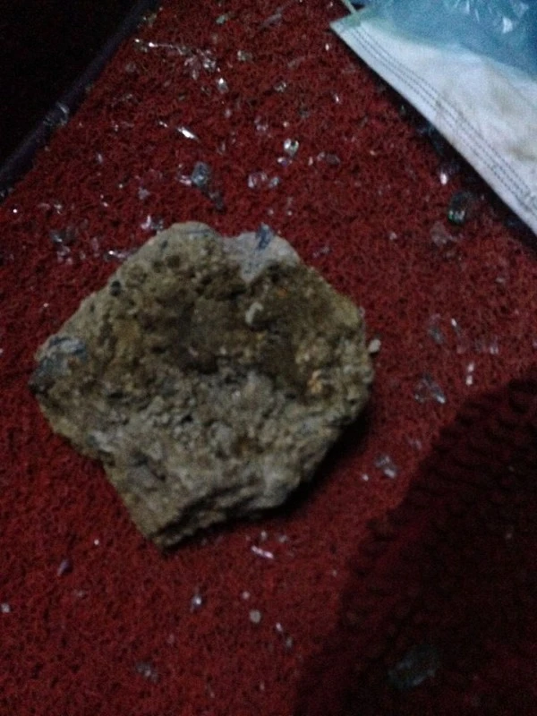 Cục bê tông to được ném vào xe