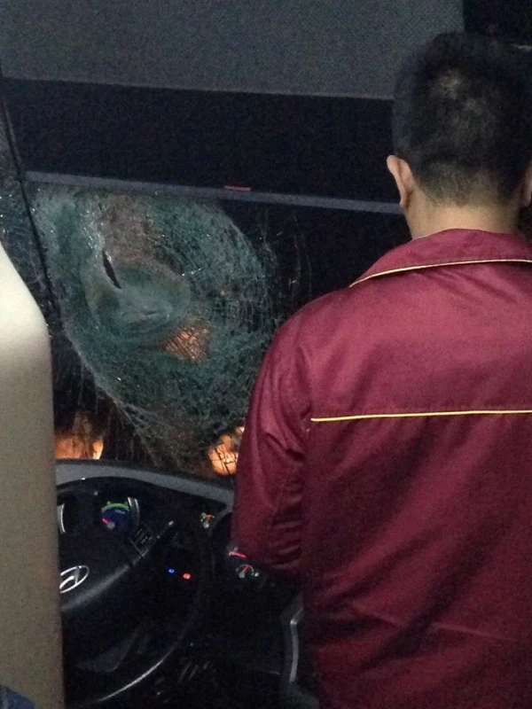 Xe khách bị ném đá vỡ kính