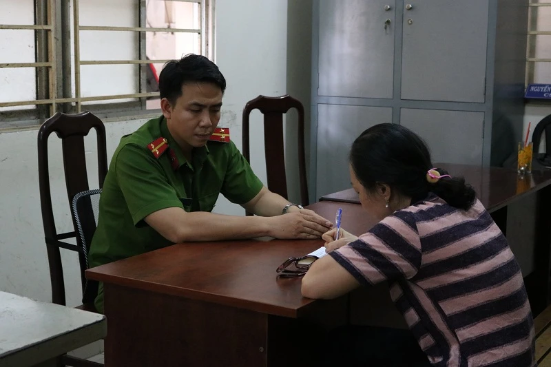 Cơ quan công an đang lấy lời khai của hai người phụ nữ. Ảnh: THANH TUYỀN