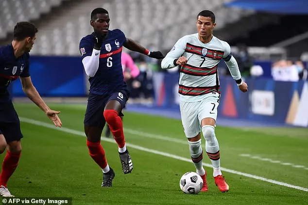 Pogba bám đuổi Ronaldo. ẢNH: GETTY IMAGES