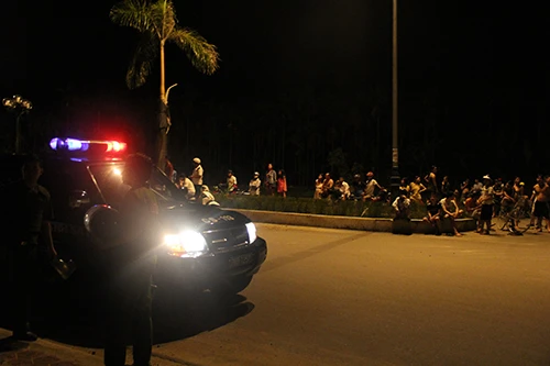 Người dân xem công an vây bắt hai nhóm thanh niên hỗn chiến.