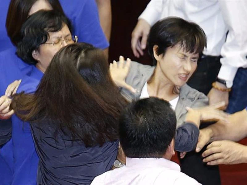 Đáp trả lại, bà Khưu đã giật tóc bà Hứa. Hai nữ nghị sĩ sau đó cố gắng túm cổ nhau. Các đồng nghiệp đến từ hai đảng cố lôi họ ra khi phiên họp rơi vào hỗn loạn. Chủ tịch cơ quan lập pháp Đài Loan Tô Gia Toàn (Su Chia-chyuan) đã kêu gọi hai bên bình tĩnh và trật tự. “Mọi người đang nhìn kìa!” – ông Tô nói to.