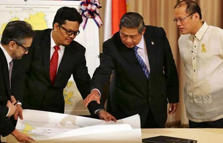 Cùng ngày, Tổng thống Benigno Aquino và Tổng thống Yudhoyono đã chứng kiến hai ngoại trưởng ký kết thỏa thuận biên giới hàng hải sau 20 năm đàm phán (ảnh). Theo hãng tin GMA (Philippines), lễ ký kết diễn ra tại dinh tổng thống Philippines.