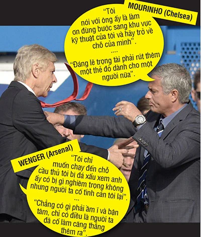 Xót cầu thủ nhà bị đòn đau lại muốn tác động đến trọng tài để rút thẻ đỏ đuổi Cahill, ông Wenger đi ngang khu kỹ thuật Chelsea và lập tức bị Mourinho gây hấn. Bực mình, ông Wenger đã xô Mourinho ra và hai bên suýt ẩu đả.