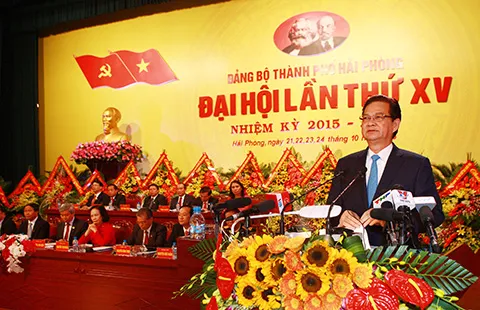 Thủ tướng Chính phủ Nguyễn Tấn Dũng thay mặt Bộ Chính trị tới dự và chỉ đạo đại hội. Thủ tướng nhấn mạnh: “Hải Phòng cần mạnh dạn là địa phương đi đầu trong cả nước về hội nhập quốc tế, tranh thủ thời cơ thu hút nguồn lực xây dựng Hải Phòng trở thành TP dịch vụ, công nghiệp-TP cảng xanh, văn minh, hiện đại”.
