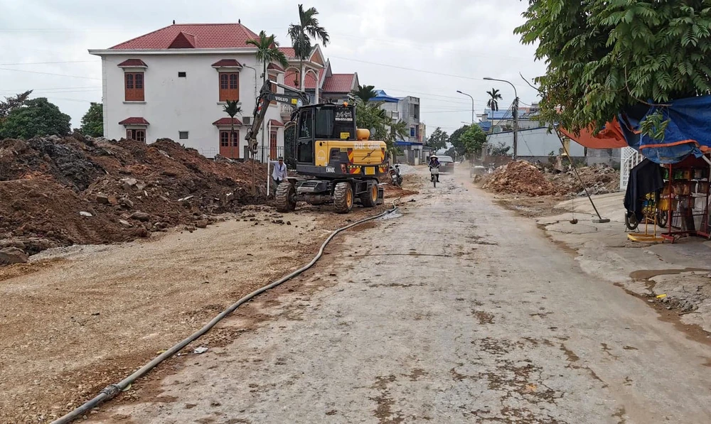 Tuyến đường trục từ xã xuống thôn ở Kiến Thiết đang được triển khai xây dựng