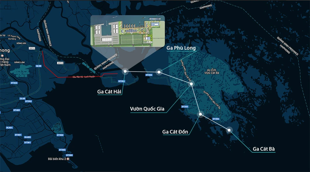Sơ đồ nhà ga và tuyến cáp treo từ Cát Hải sang Cát Bà.
