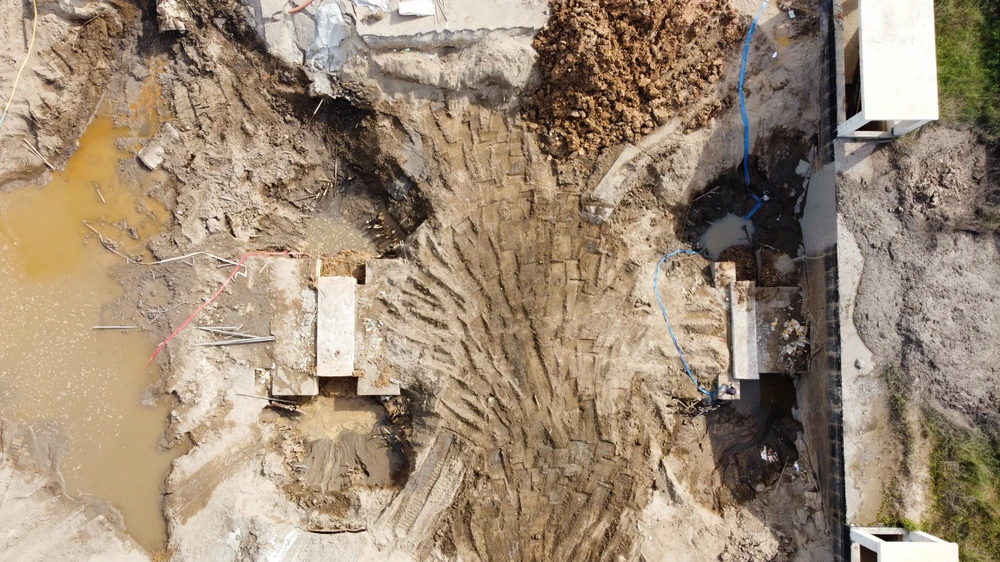 Phần mặt đường bị lún nứt được đào lên để khắc phục sự cố, Ảnh: HH