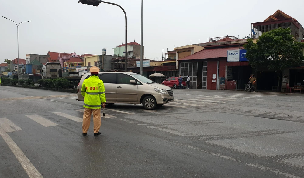 Sáng 2-4, tại chốt liên ngành kiểm soát dịch COVID-19 tại khu vực ga Dụ Nghĩa (xã Đại Bản, huyện An Dương) trên cửa ngõ quốc lộ 5 dẫn vào TP Hải Phòng đã có rất nhiều ô tô biển ngoại tỉnh, cả xe tải lẫn xe hơi đều phải quay đầu, không được vào Hải Phòng.