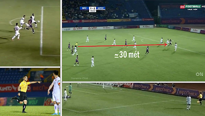 Đội khách Hải Phòng mất 2 điểm oan từ tình huống đó. Họ bị chủ nhà B. Bình Dương gỡ hòa 2-2 từ chấm 11 m.