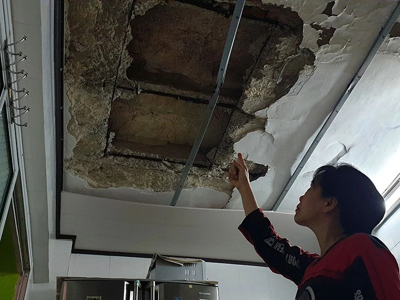 Hầu hết các dãy nhà này vữa tường, trần bê tông đều bong tróc, cầu thang bê tông nứt vỡ trơ sắt, nước thoát nhà vệ sinh ngấm bốc mùi nồng nặc. Những năm gần đây hầu như năm nào cũng có vài vụ sập vữa trần bê tông.