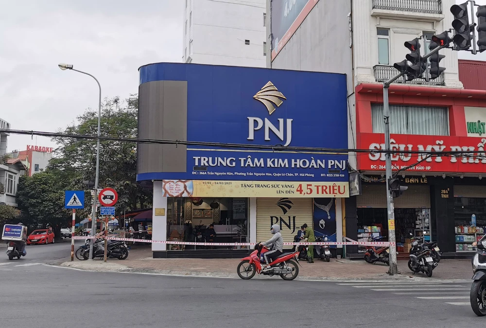 Tiệm kim hoàn trên đường Trần Nguyên Hãn, nơi trường hợp dương tính COVID-19 từng tới mua trang sức bị phong tỏa.