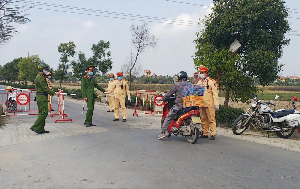 Lực lượng chức năng phong tỏa khu vực thôn 4 xã Hoàng Động. Ảnh: ĐH