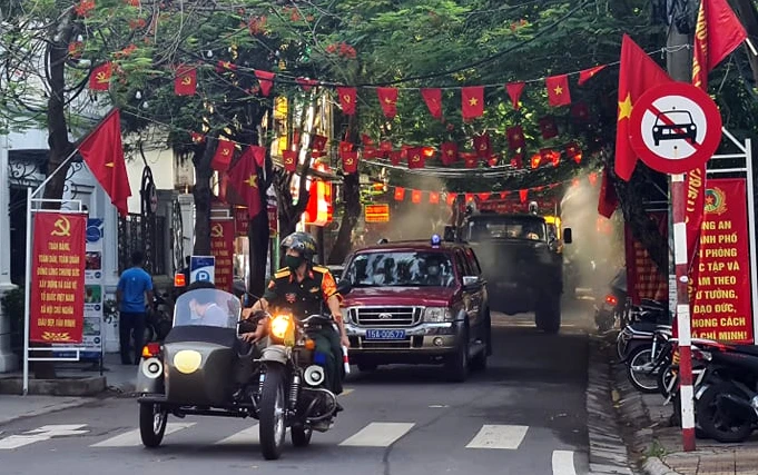 Theo đó, sáng 11-8, xe ô tô chở hoá chất của Trung tâm y tế dự phòng đã thực hiện phun khử trùng các tuyến phố trung tâm của TP Hải Phòng như Trần Phú, Nguyễn Đức Cảnh, Quang Trung, Trần Hưng Đạo, Hoàng Văn Thụ…