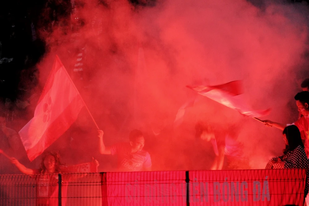Những phút cuối trận pháo sáng được đốt đầy khán đài và hai đợt pháo sáng được ném nhiều xuống khắp mặt sân. Đây là những quả pháo sáng của lực lượng cổ động viên Hải Phòng ném xuống.