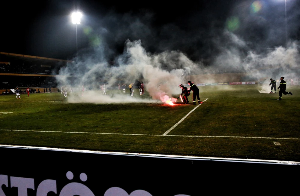 Bữa tiệc bóng đá bị phá bởi pháo sáng.