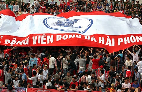 Cổ động viên Hải Phòng là cầu thủ thứ 12 của đội bóng đang dẫn đầu giải thi đấu trên sân Lạch Tray. Ảnh: QUANG THẮNG