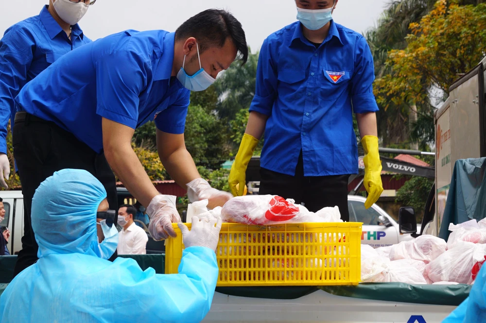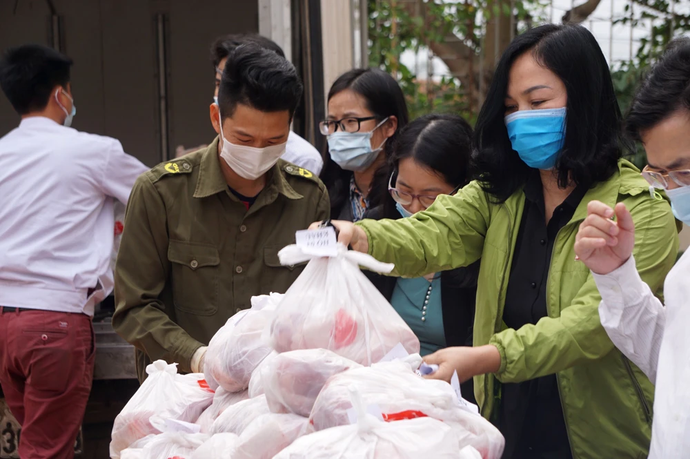 Trưa 23-2, lực lượng chức năng của UBND TP Hải Phòng đã cung cấp miễn phí hơn 7 tấn gạo, gần 2 tấn thịt heo cho người dân trong vùng bị phong tỏa thuộc xóm 4 Lôi Động (xã Hoàng Động, huyện Thủy Nguyên).