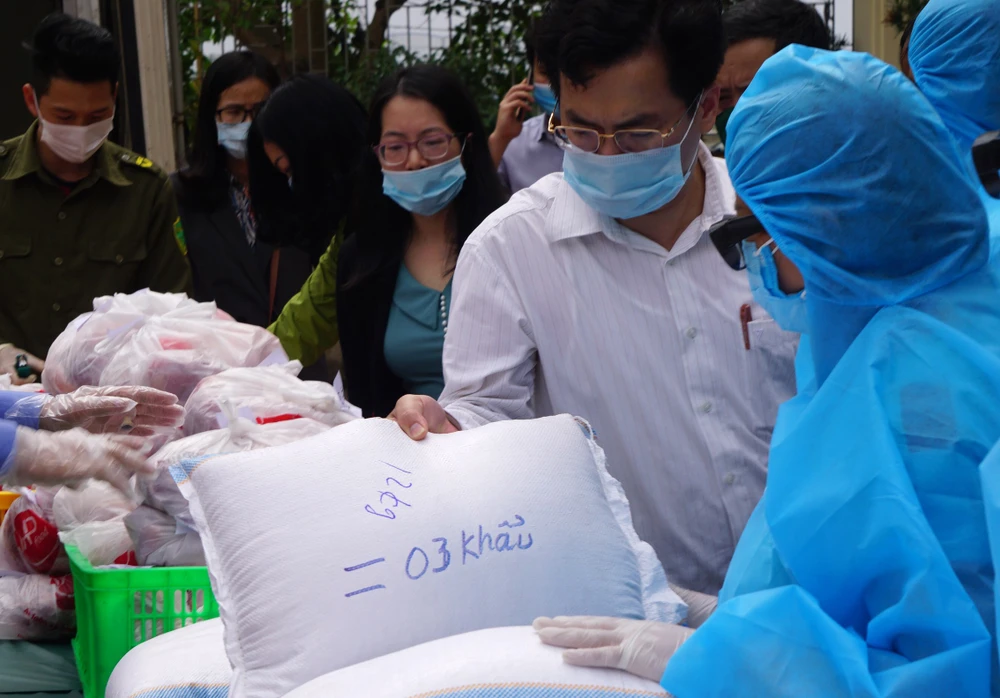 Phó chủ tịch UBND TP Hải Phòng Nguyễn Đức Thọ kiểm tra công tác tiếp tế lương thực, thực phẩm cho người dân vùng bị phong tỏa