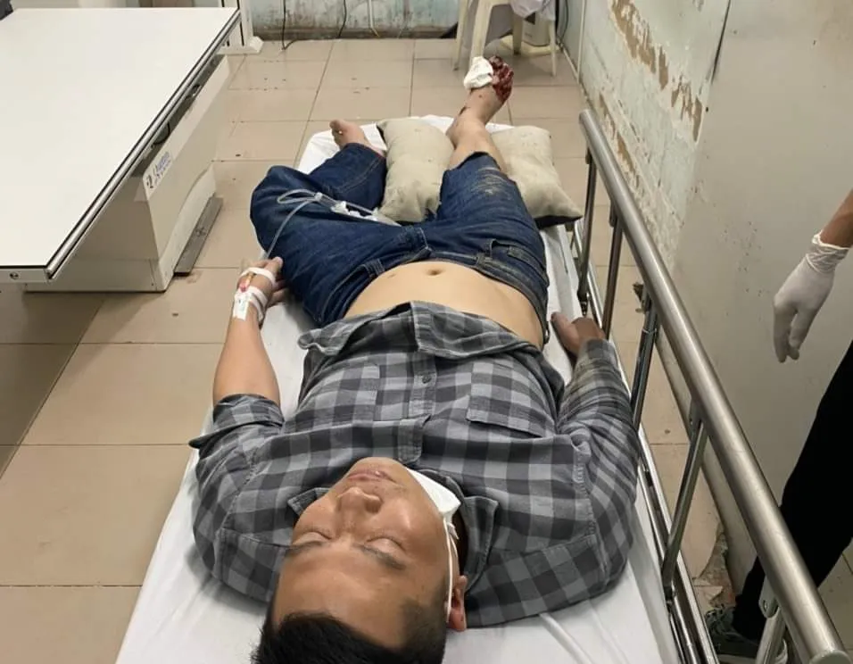 Lúc này anh Quảng bị nhóm T. dùng hung khí uy hiếp, khiến anh này ngã ra đường. Sau đó, anh Quảng được gia đình đưa đi cấp cứu tại bệnh viện trong tình trạng bị gãy xương cẳng chân.