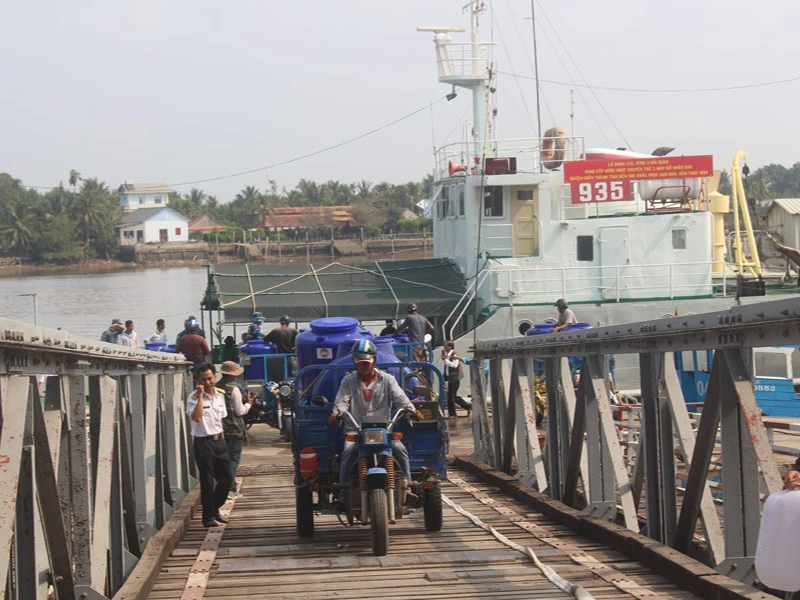 Đại úy Nguyễn Văn Thương, thuyền trưởng tàu 935 Lữ đoàn 125, Vùng 2 hải quân, cho biết từ trước tết Nguyên đán đến nay, tàu của Lữ đoàn 125 đã chở bốn chuyến nước ngọt (1.000 khối nước) phục vụ miễn phí cho người dân các huyện Ba Tri, Bình Đại và Thạnh Phú, Châu Thành trước tình hình hạn hán, xâm nhập mặn đang diễn ra gay gắt.