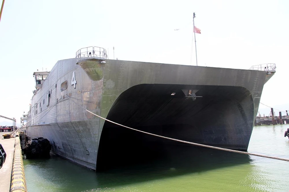 Tàu USNS Fall River (T-EPF-4) của Hải quân Mỹ được chào đón tại Cảng Tiên Sa. Ảnh: N.TRI