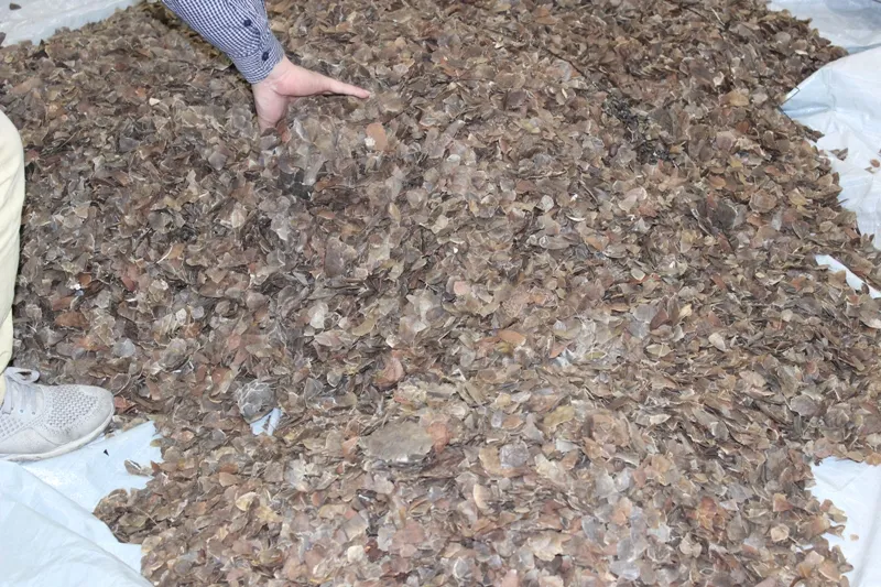 Lô hàng thứ ba gồm bốn kiện hàng khai báo trên vận đơn là văn phòng phẩm nhưng đều chứa vẩy tê tê.