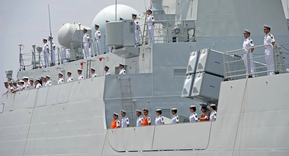 Thành viên Hải quân Trung Quốc đứng gác trên con tàu Wei Fang của nước này (Nguồn: Sputnik News)