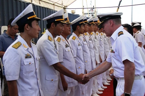 Đoàn thủy thủ Hải quân Úc được chào đón tại cầu cảng. Ảnh: TT