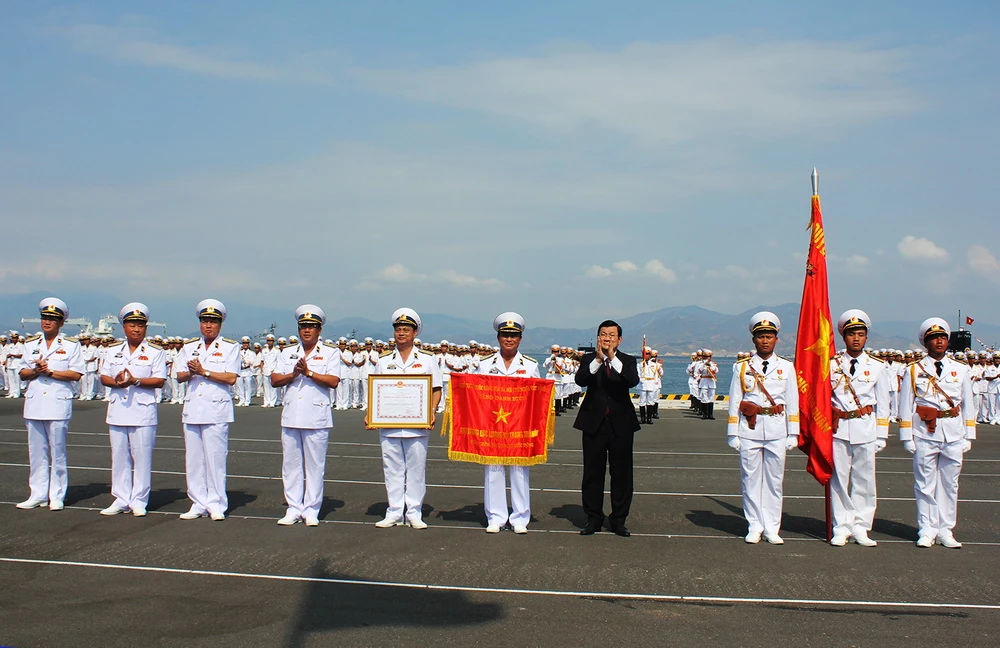 Chủ tịch nước Trương Tấn Sang trao danh hiệu anh hùng lực lượng vũ trang nhân dân thời kỳ đổi mới cho Quân chủng Hải quân.