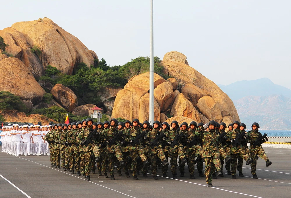 Các loại phương tiện, vũ khí của Hải quân nhân dân Việt Nam diễu duyệt qua lễ đài.