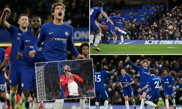 CHELSEA (3-4-2-1): Courtois 7; Azpilicueta 7, Christensen 7, Cahill 7; Moses 6.5 (Zappacosta 82), Bakayoko 6.5, Kante 7, Alonso 7.5; Pedro 6.5 (Fabregas 68, 6.5), Willian 8; Hazard 7 (Morata 73)