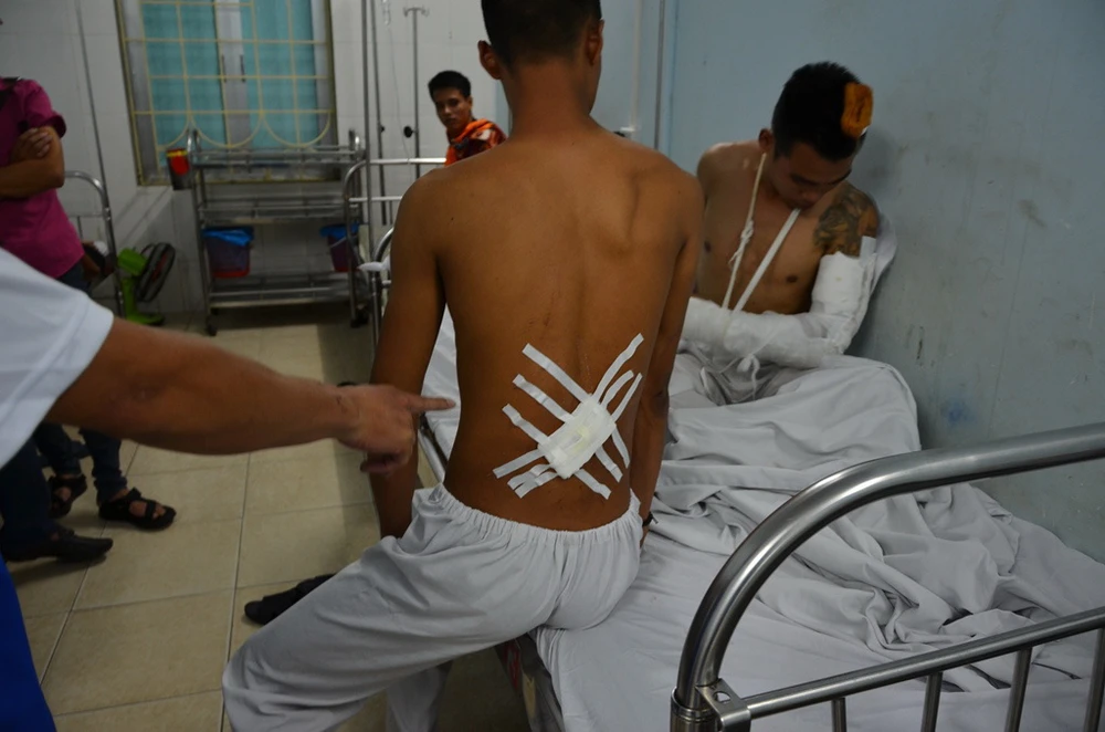 Anh Hải và anh Ba đang điều trị tại bệnh viện Quân Y 103. Ảnh: PHI HÙNG.