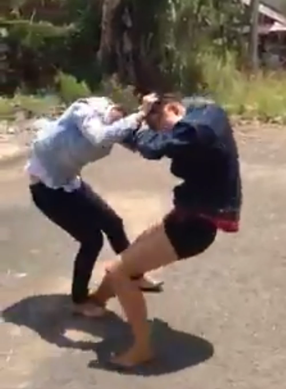 Theo clip, hai thiếu nữ hẹn gặp rồi lao vào ẩu đả, túm tóc, đánh đấm liên tiếp. Một thiếu nữ bị đối phương vật xuống đường, dùng tay liên tục đánh vào đầu khiến nạn nhân bất tỉnh tại chỗ.