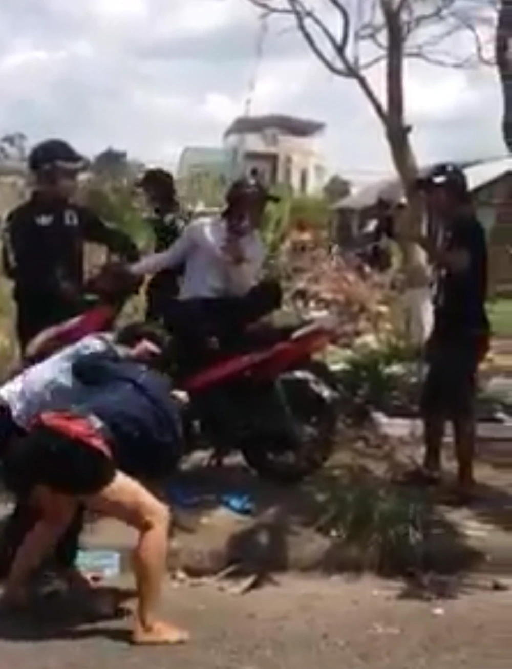 Rất nhiều thanh niên trẻ đứng xem, quay phim nhưng không ai can ngăn.