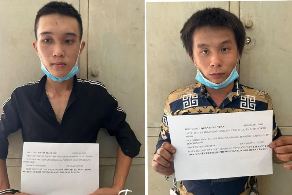 Ngày 28-3, Công an quận Tân Phú, TP.HCM tạm giữ hình sự với Nguyễn Thanh Lộc (21 tuổi, ngụ quận Tân Bình) và Quản Minh Tuấn (22 tuổi, ngụ quận 3) để điều tra về hành vi cướp giật tài sản.