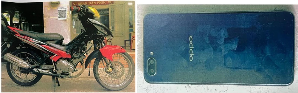 Tang vật gồm chiếc xe máy phương tiện và điện thoại Oppo của bị hại được công an tạm giữ. Ảnh: CA