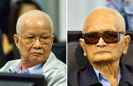 Ngày 7-8 tại Phnom Penh, tòa án đặc biệt xét xử tội ác Khmer Đỏ do LHQ bảo trợ đã kết án tù chung thân đối với Khieu Samphan (ảnh trái) 83 tuổi, nguyên chủ tịch Hội đồng nhà nước thời Khmer Đỏ và Nuon Chea (ảnh phải) 88 tuổi, nguyên phó chủ tịch đảng thời Khmer Đỏ.