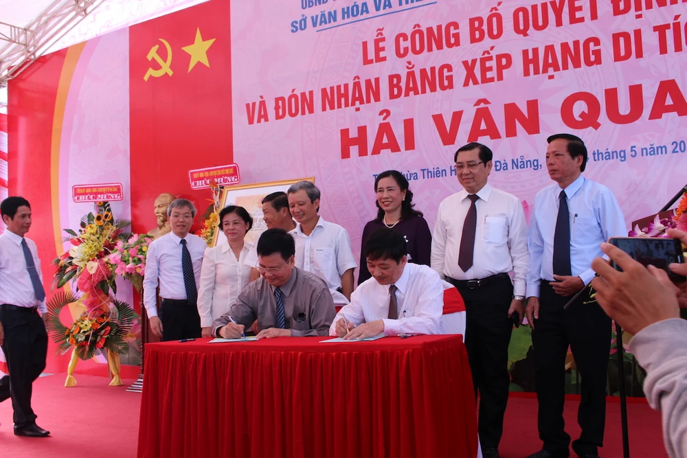 Cũng ngay trong chiều nay, UBND tỉnh Thừa Thiên-Huế và UBND TP Đà Nẵng đã ký bản ghi nhớ phối hợp thực hiện công tác bảo tồn và phát huy giá trị Hải Vân Quan.