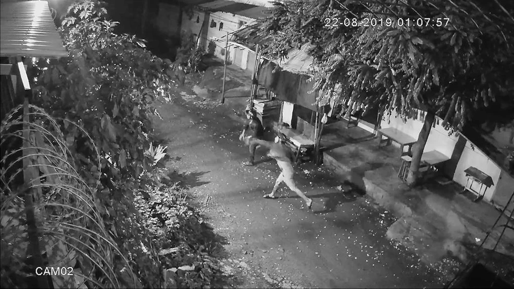 Cụ thể, khoảng 1 giờ sáng 22-8, camera an ninh cửa hàng nội thất ô tô nằm cạnh nhà của bà L. ghi nhận một số đối tượng lạ mặt tạt sơn. Đây là nhóm người đã tạt sơn nhà bà L. vào gần như cùng thời điểm.