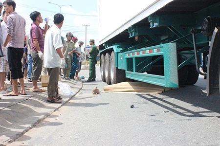 Cú va chạm khiến chiếc xe cotainer cán qua người cặp vợ chồng trẻ, thi thể người chồng nằm dưới bánh sau của chiếc xe container, người vợ được đưa đi cấp cứu nhưng đã tử vong. Sự việc xảy ra ngay giao lộ nên khiến hàng trăm người dân hiếu kỳ tập trung theo dõi.