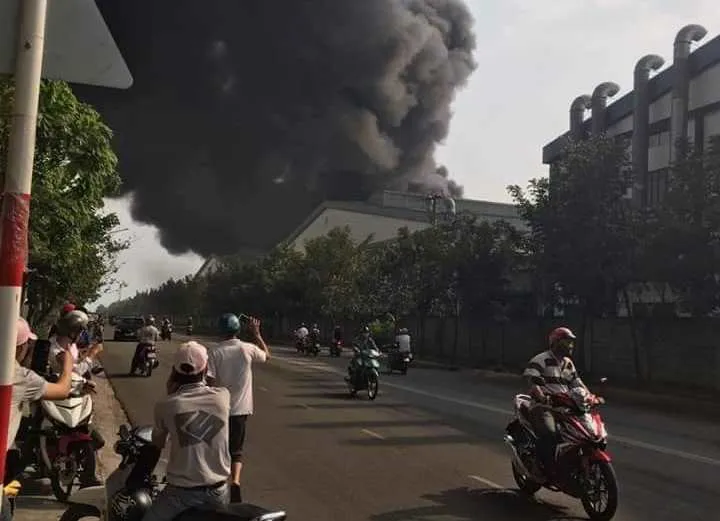 Vụ cháy lớn bào trùm công ty khiến hàng ngàn công nhân hoảng loạn bỏ chạy